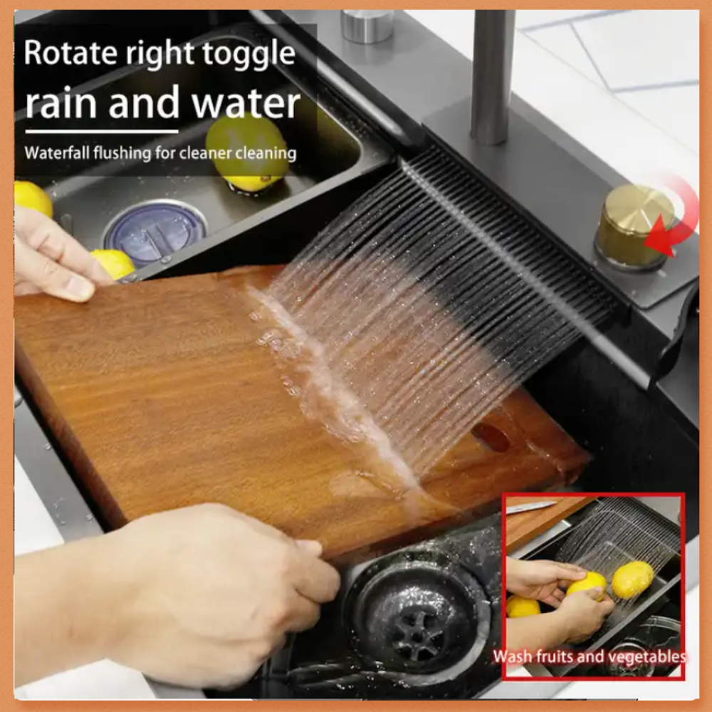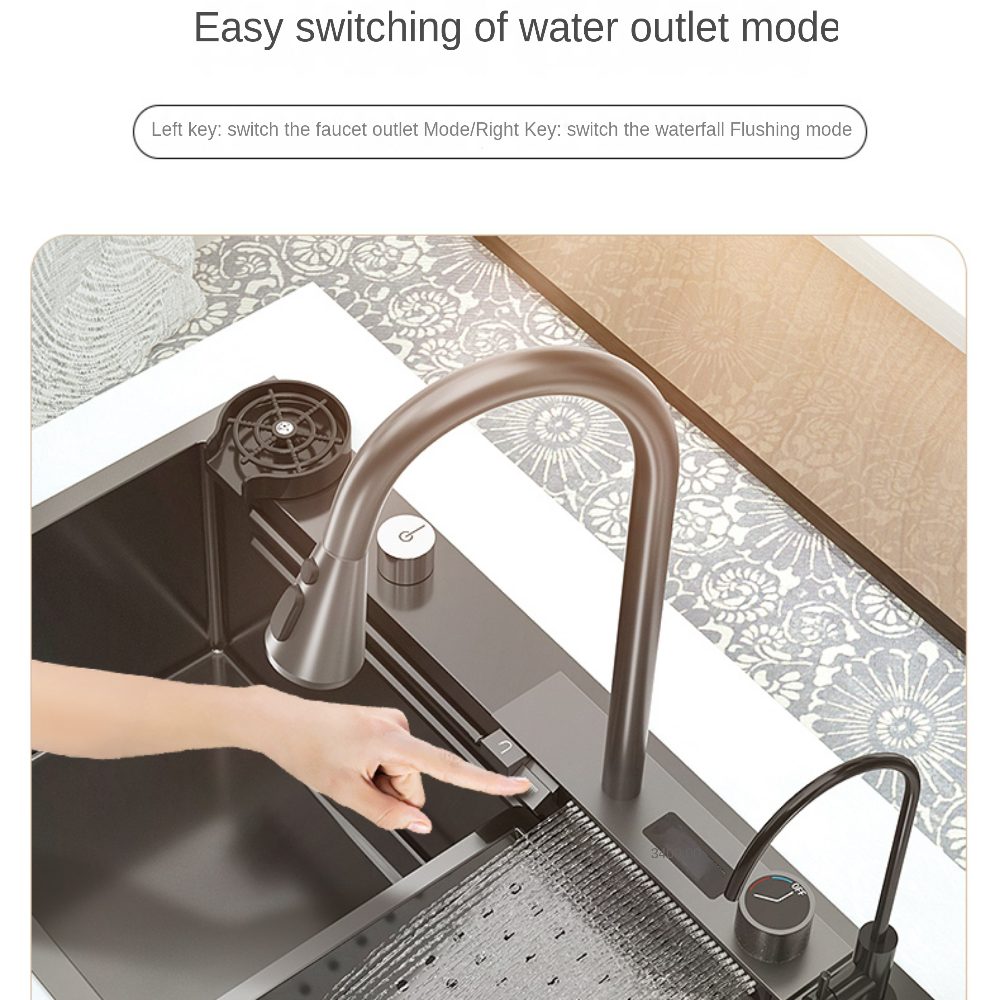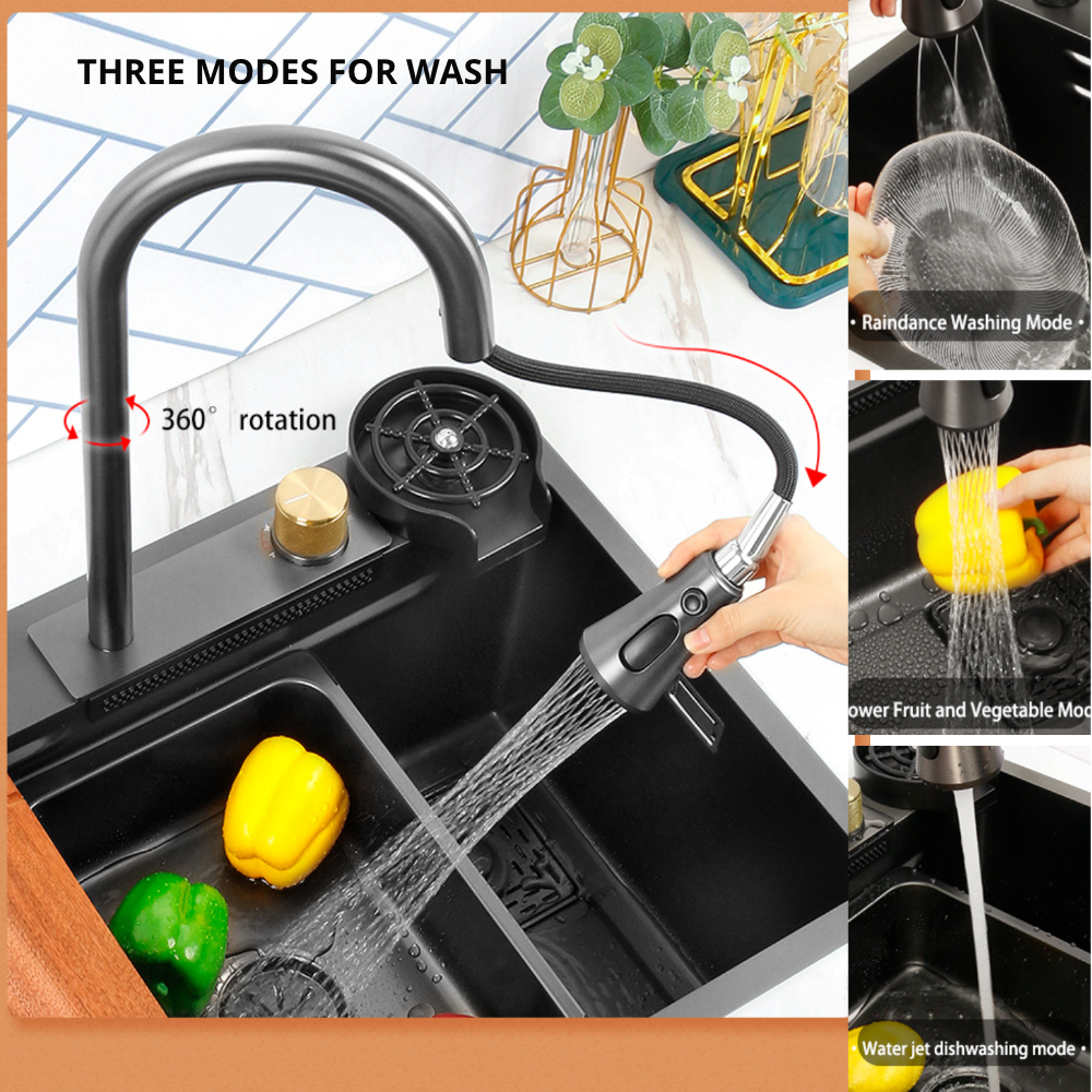 Smart Kitchen Sink & Smart Touch On Kitchen Faucet, waterfall multifunction, Anti-Scratch 304 Stainless Steel, 3 in 1 Accessories, 3 Modes Pull Down Sprayer, Smart Touch Sensor Activated, Auto ON/Off. (KSF-200)