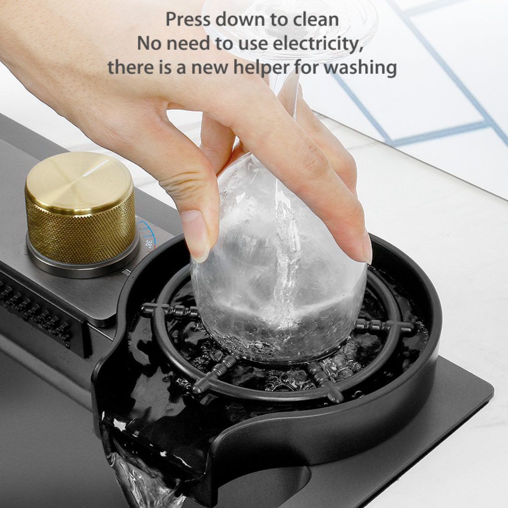 - The cup washer does not need electricity, it can be rinsed by pressing it, and it can quickly wash multiple cups, saving time and effort. Equipped with a drain knob, no need to put your hands in the water, just turn it to drain.