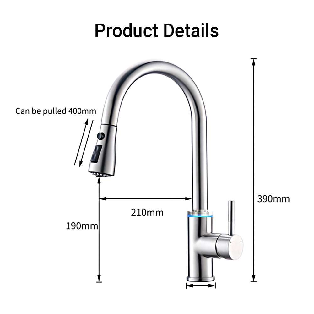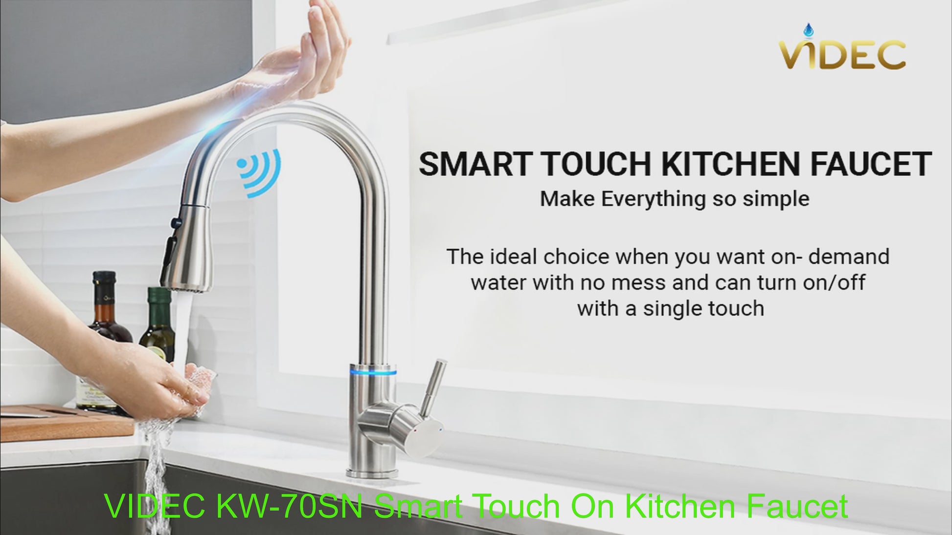 - * VIDEC SMART KITCHEN FAUCET provides TOUCH CONTROL TECHNOLOGY: Unlike traditional kitchen faucets. No longer using the single lever handle with your messy hand, you just touching anywhere of the gooseneck on the kitchen faucet with your hand or forearm to start and stop the flowing. KEEP achieve a nearly contactless cleaning design of the faucet.